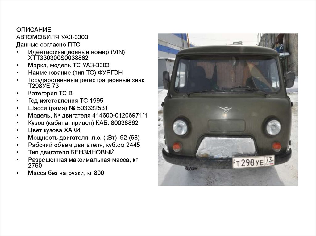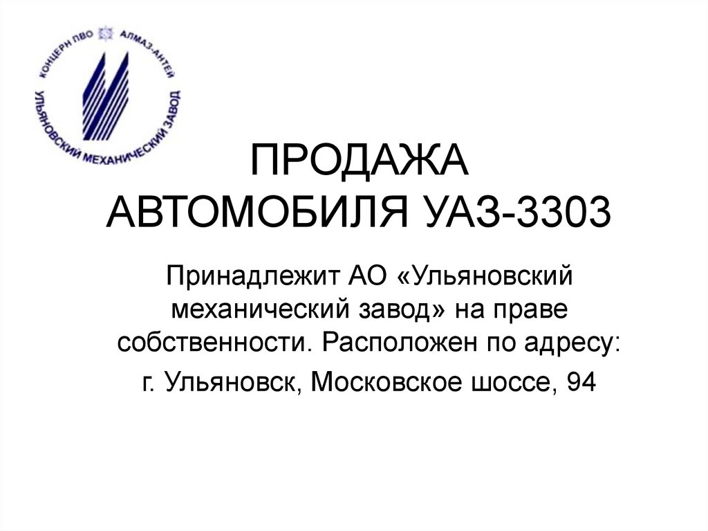 1. ПРОДАЖА АВТОМОБИЛЯ УАЗ-3303