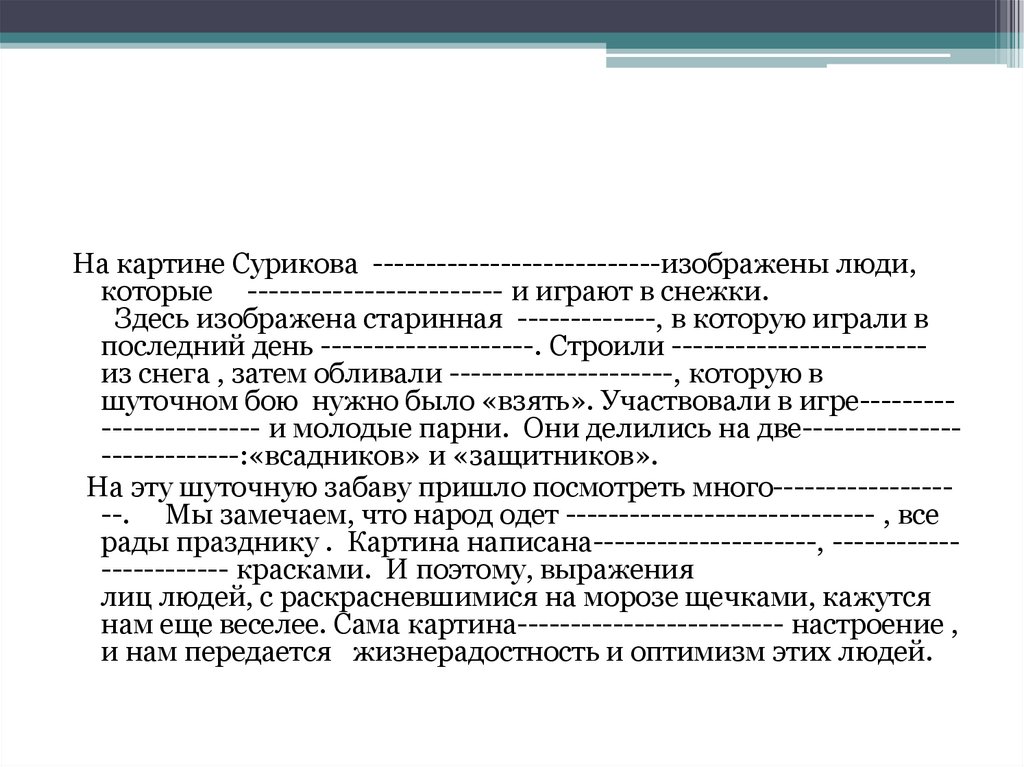Устное сочинение по картинеВ.Сурикова «Взятие снежного