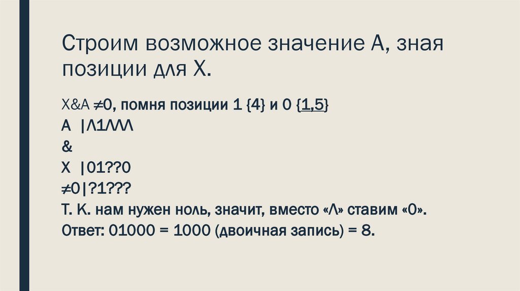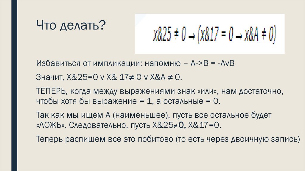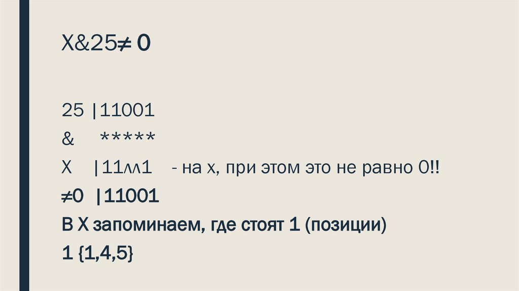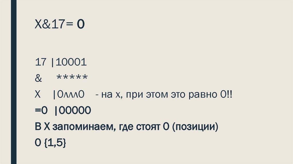 Значит, X&25=0 v X& 17≠ 0 v X&A ≠ 0.