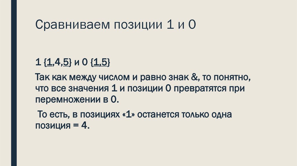 Сравниваем позиции 1 и 01 {1,4,5} и 0 {1,5}
