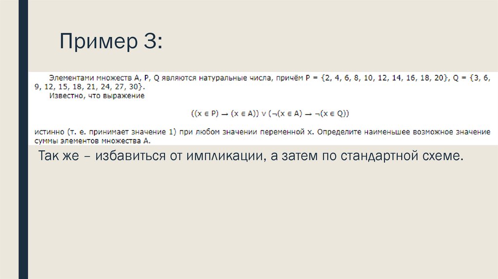 Пример 3:Так же – избавиться от импликации, а затем по стандартной схеме.