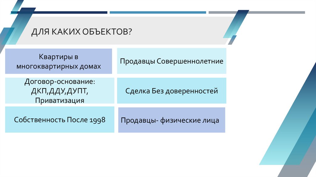 ДЛЯ КАКИХ ОБЪЕКТОВ?Квартиры в