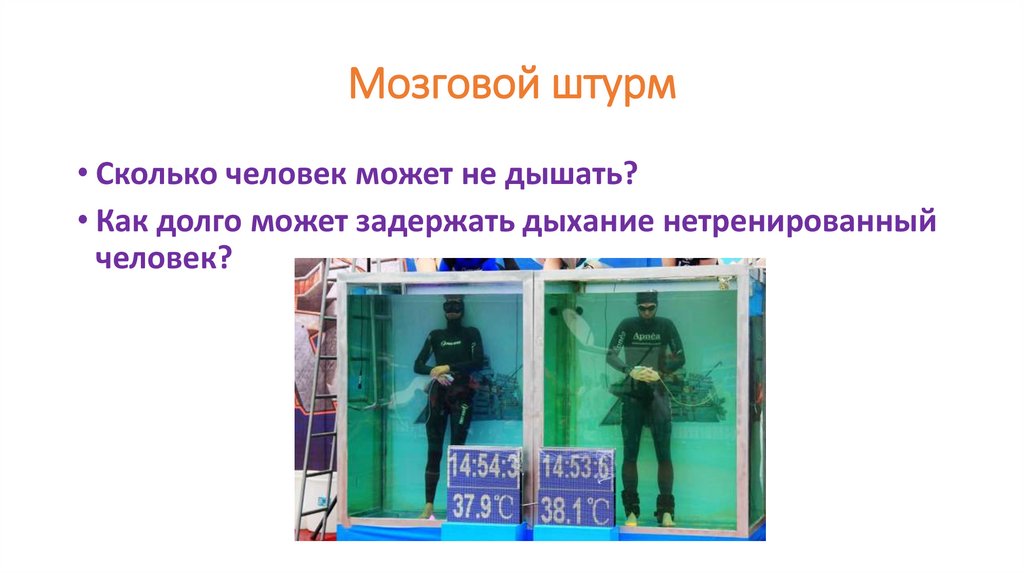 • Без воздуха человек гибнет через несколькоминут. Хотя некоторые люди и могут задерживать