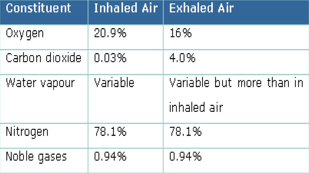 Различие в содержании вдыхаемого и выдыхаемого воздуха