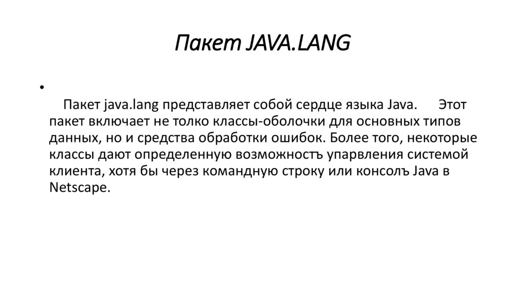 Пакет JAVA.LANGПакет java.lang представляет собой сердце языка Java. Этот