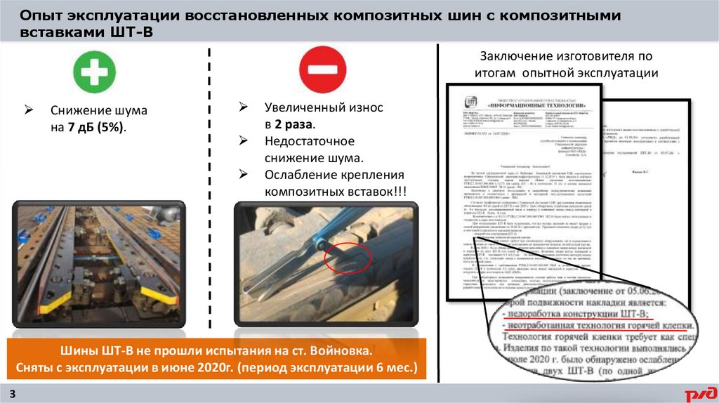 Опыт эксплуатации восстановленных композитных шин с композитнымивставками ШТ-В