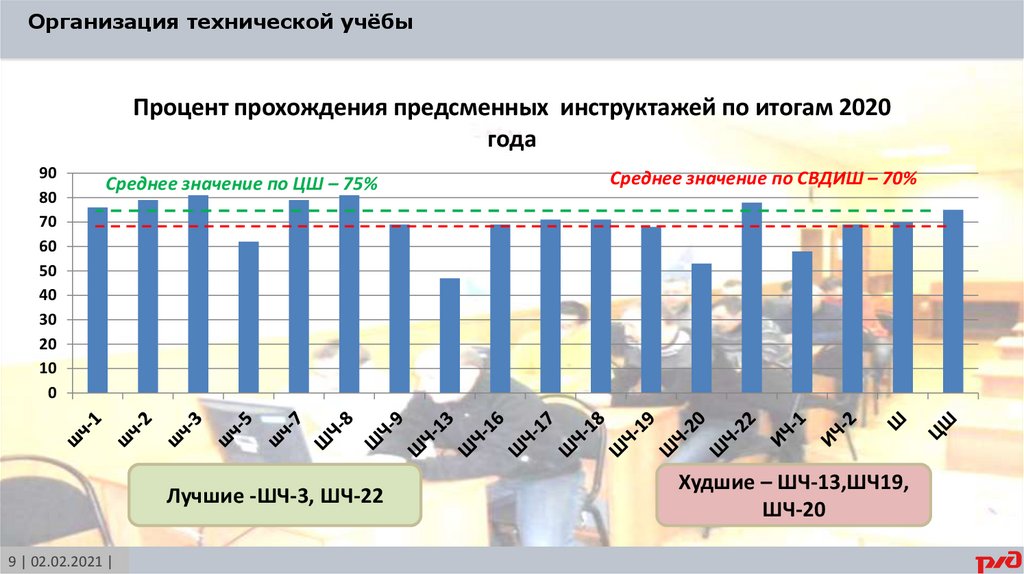 Организация технической учёбыПроцент прохождения предсменных инструктажей по итогам 2020