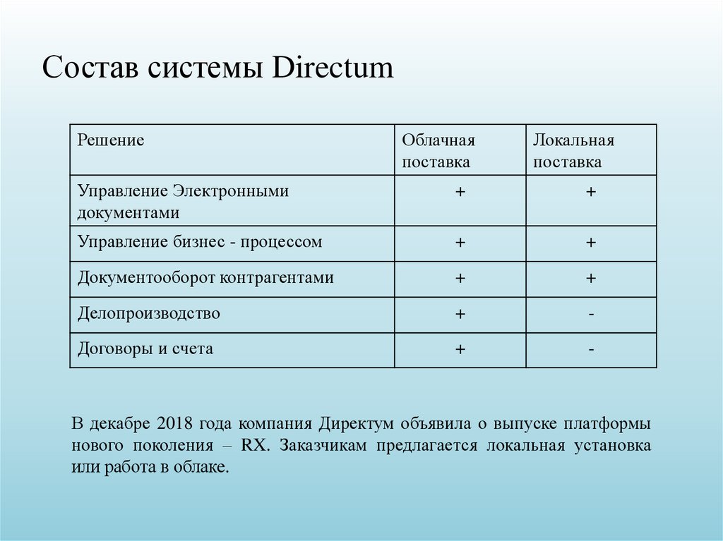 Состав системы DirectumРешение