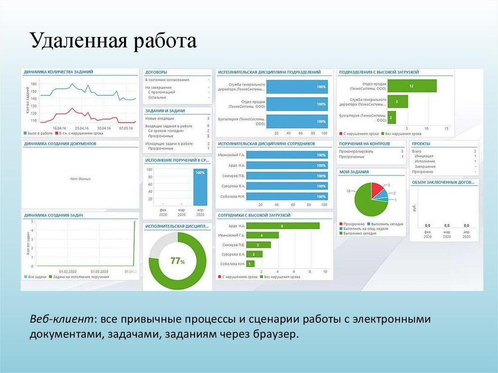 документами, задачами, заданиям через браузер.