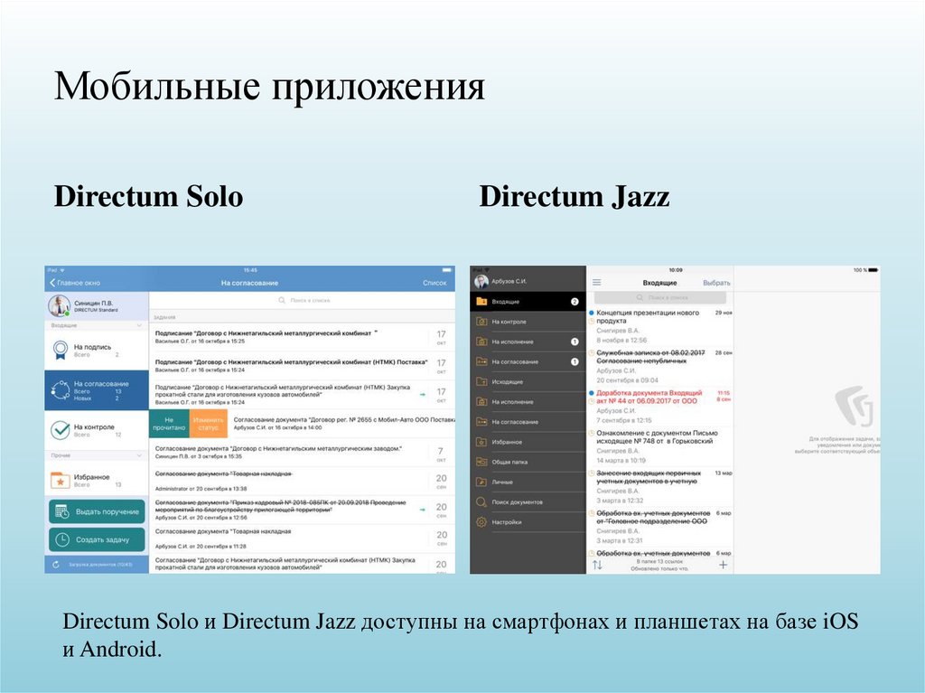 Directum Solo и Directum Jazz доступны на смартфонах и планшетах на базе iOS