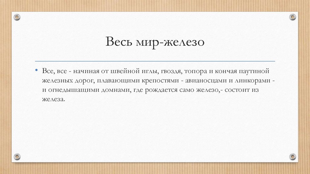 Весь мир-железо• Все, все - начиная от швейной иглы, гвоздя, топора и кончая паутиной