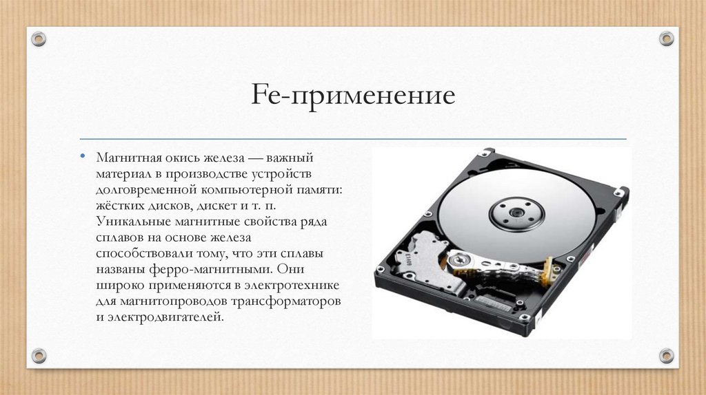 Fe-применение• Магнитная окись железа — важный