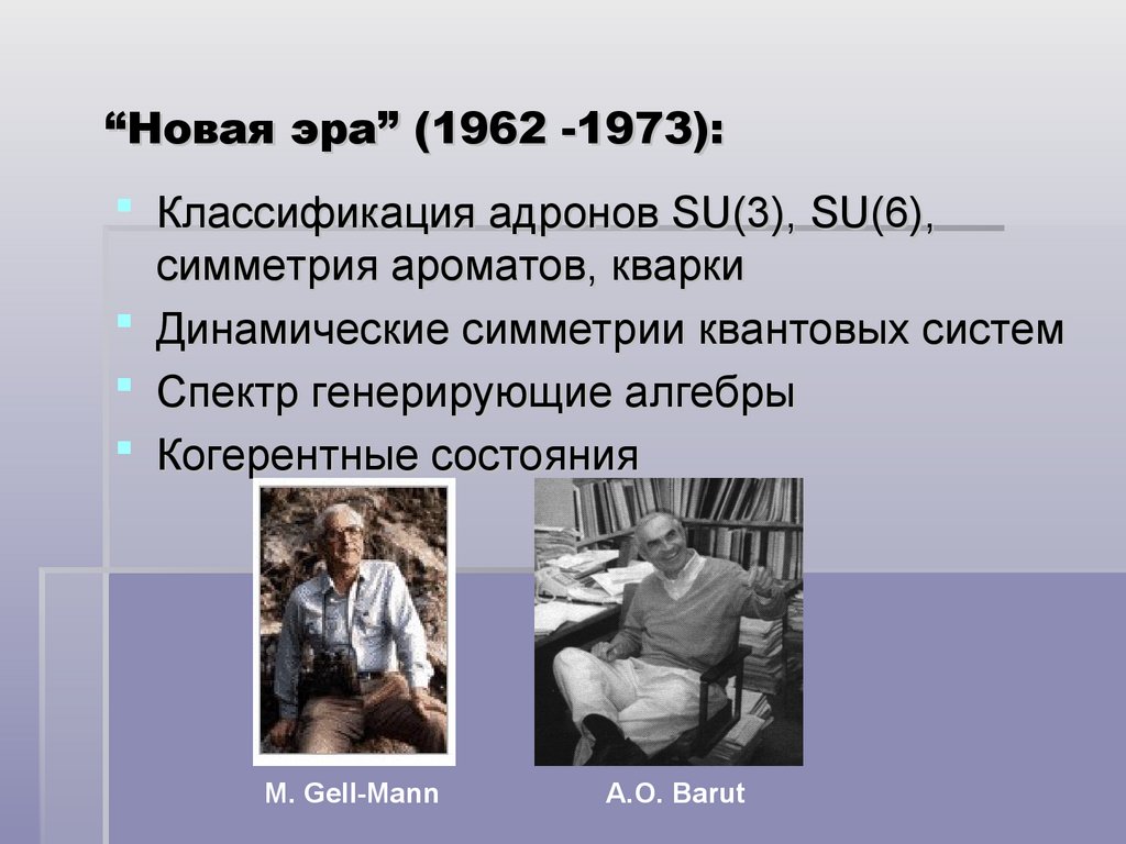 “Новая эра” (1962 -1973):Классификация адронов SU(3), SU(6),