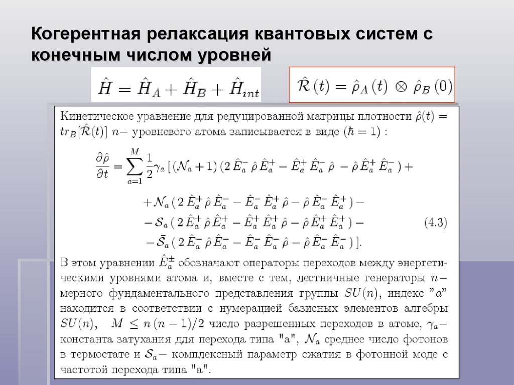 Когерентная релаксация квантовых систем сконечным числом уровней