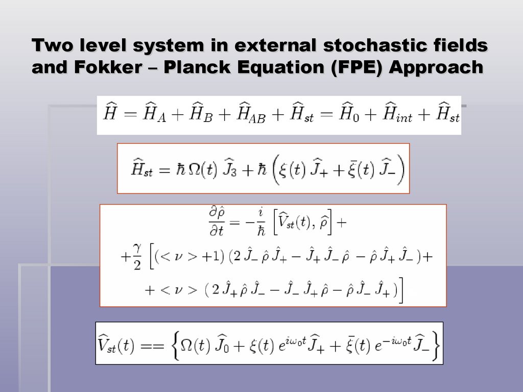 Two level system in external stochastic fieldsand Fokker – Planck Equation (FPE) Approach
