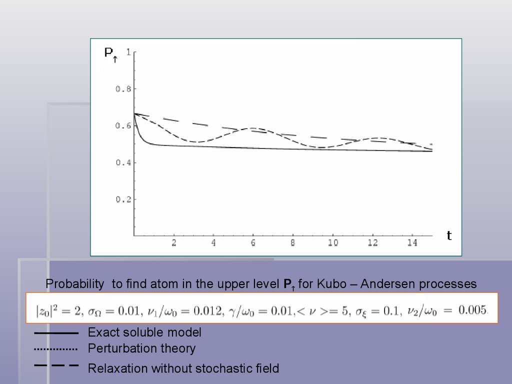 Probability to find atom in the upper level P for Kubo – Andersen processesExact soluble model