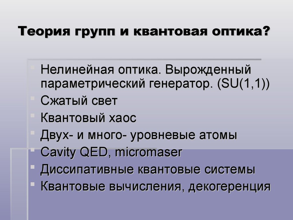 Теория групп и квантовая оптика?Нелинейная оптика. Вырожденный
