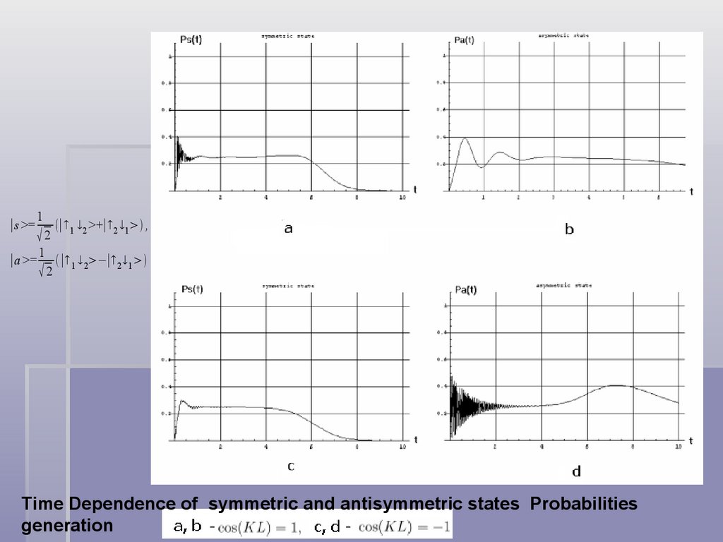 Time Dependence of symmetric and antisymmetric states Probabilities