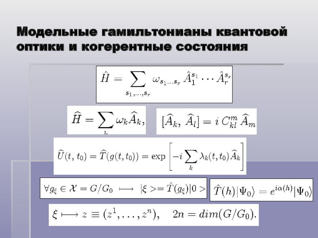Модельные гамильтонианы квантовойоптики и когерентные состояния