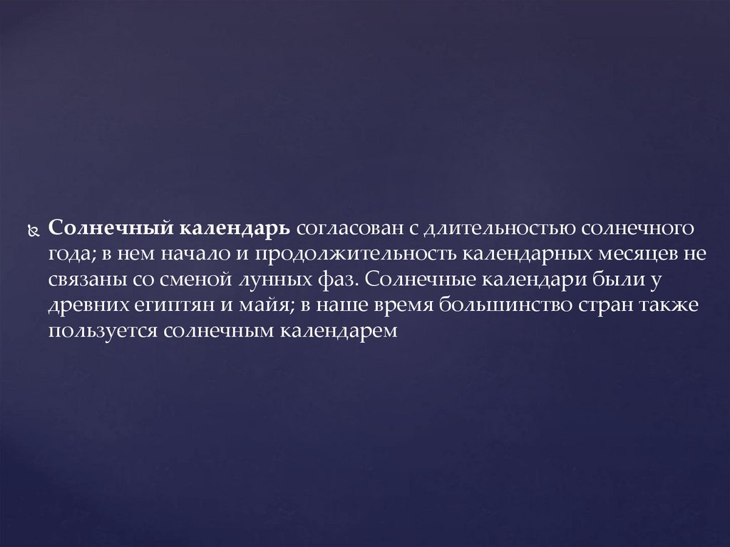 Солнечный календарь согласован с длительностью солнечногогода; в нем начало и продолжительность календарных месяцев не