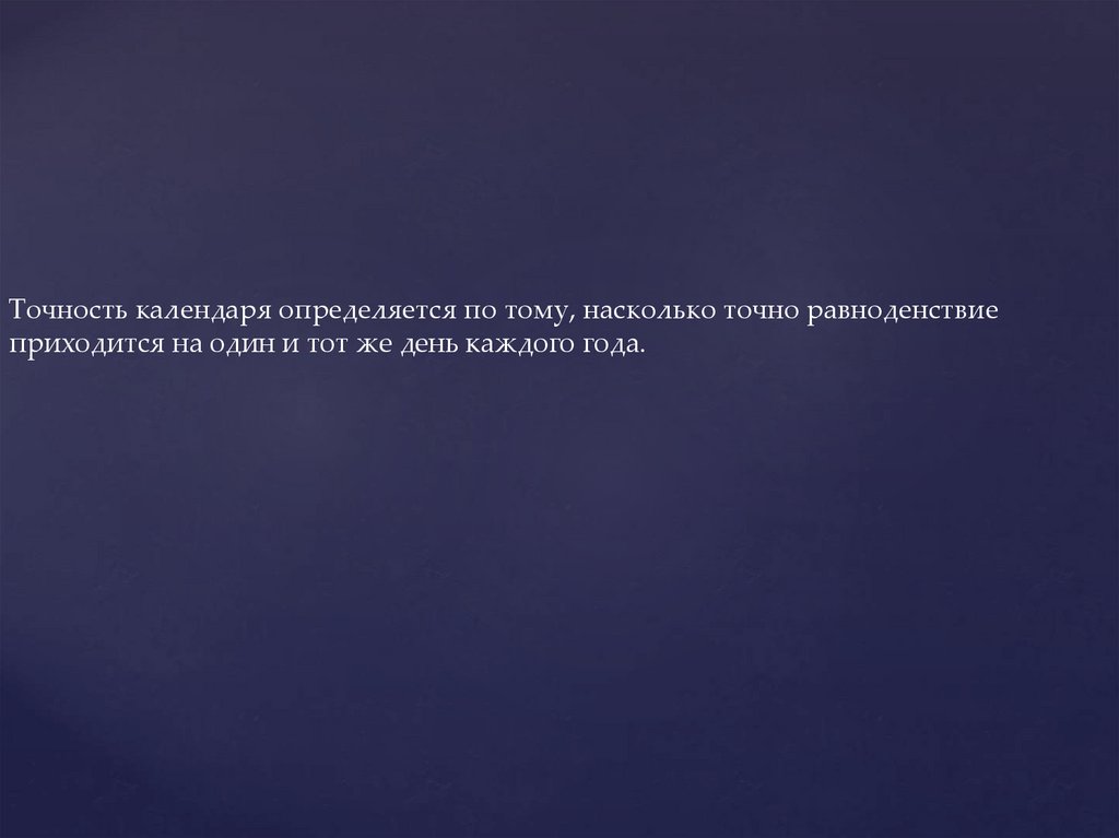 Точность календаря определяется по тому, насколько точно равноденствиеприходится на один и тот же день каждого года.