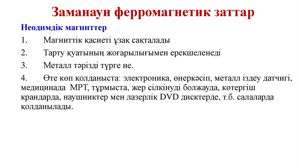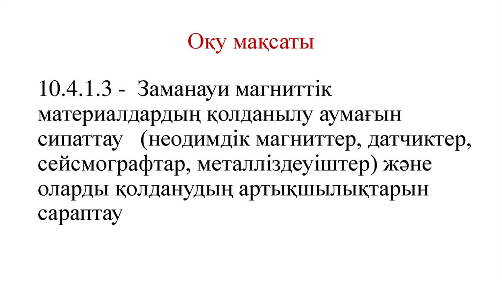 Оқу мақсаты10.4.1.3 - Заманауи магниттік