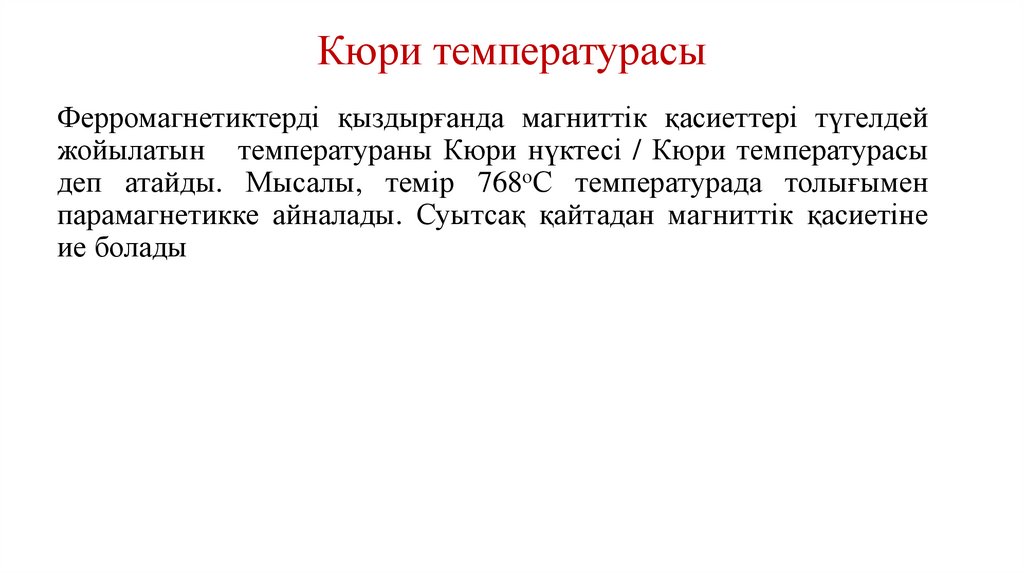 Кюри температурасыФерромагнетиктерді қыздырғанда магниттік қасиеттері түгелдей