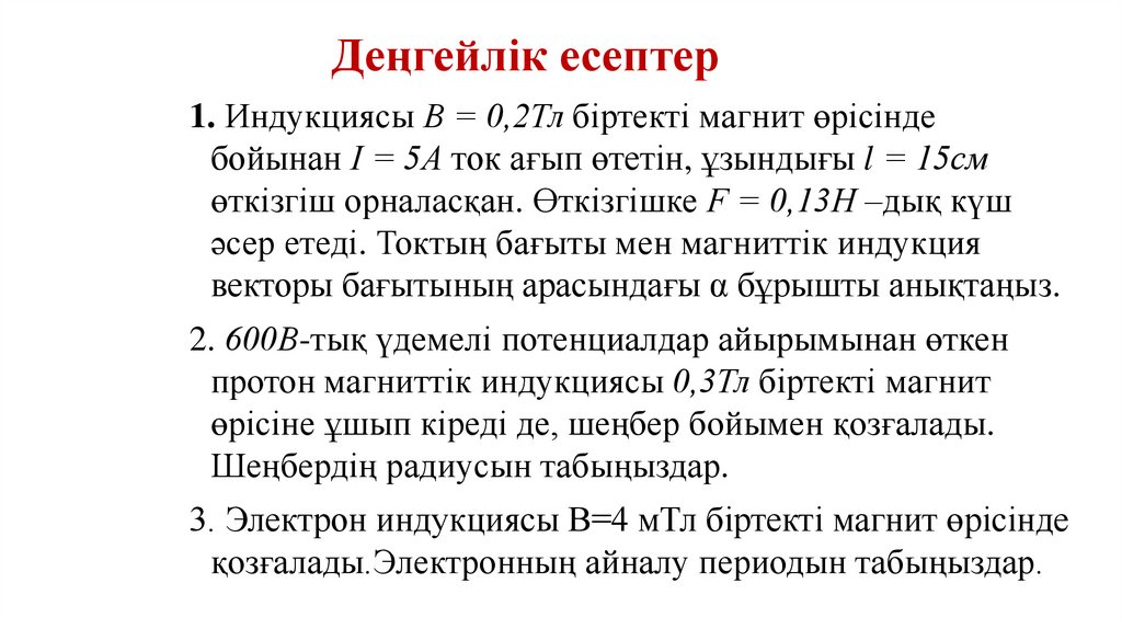 Деңгейлік есептер1. Индукциясы В = 0,2Тл бiртектi магнит өрiсiнде