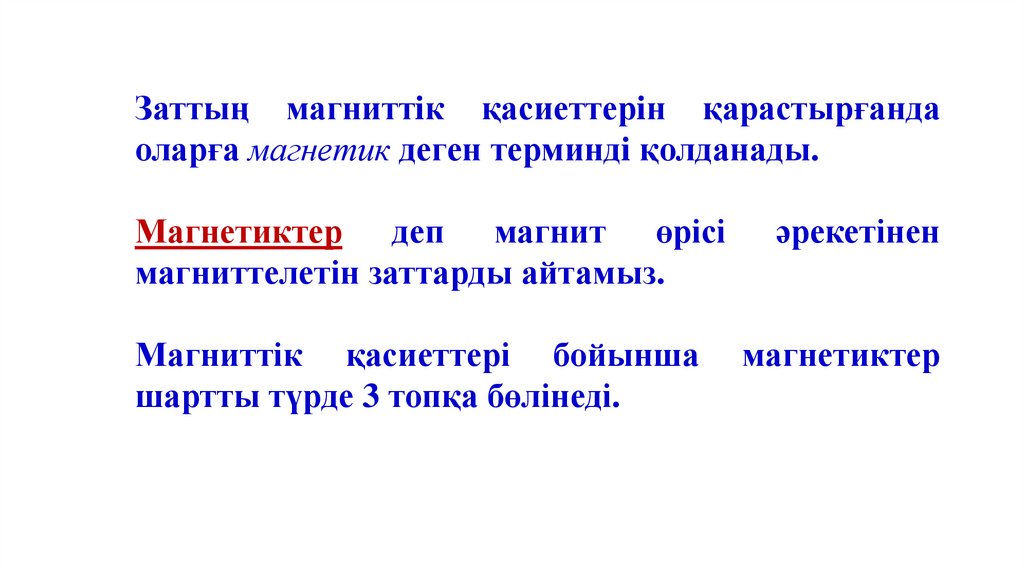 Заттың магниттiк қасиеттерiн қарастырғандаоларға магнетик деген терминдi қолданады.