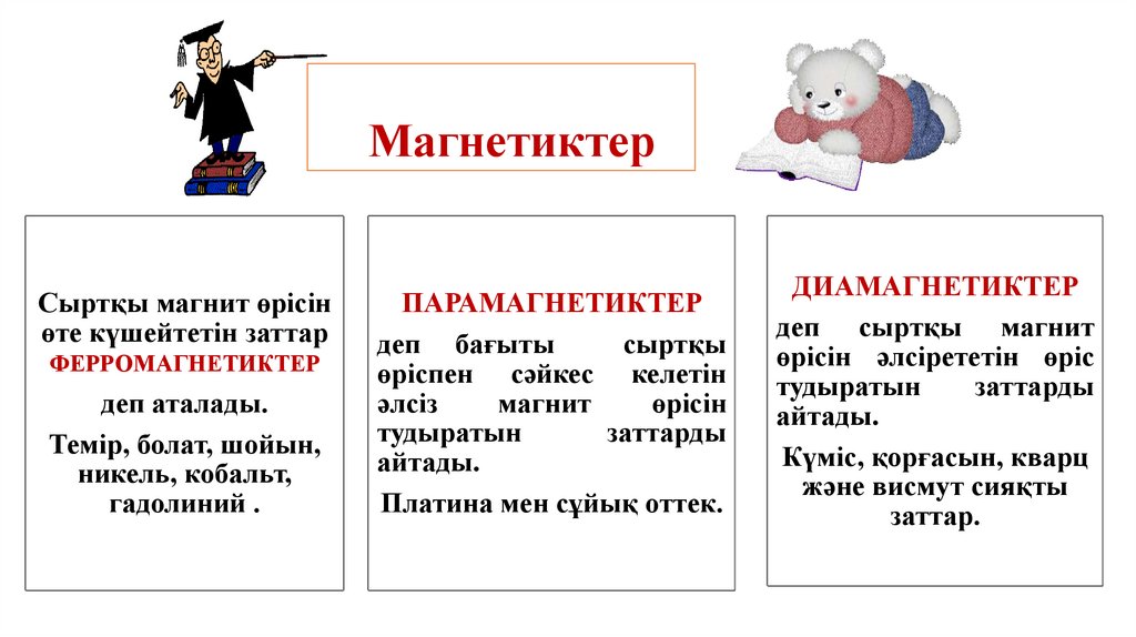 парамагнетиктер және ферромагнетиктер.