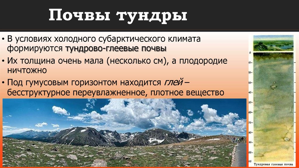 • Смена природных почв происходит вместе с изменением климатических поясов – с юга на север