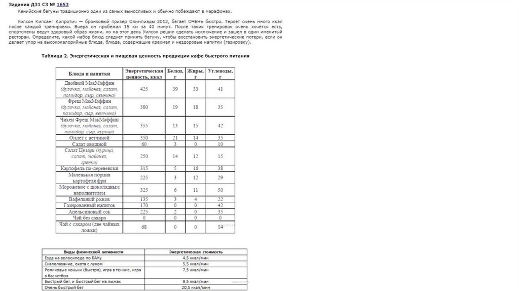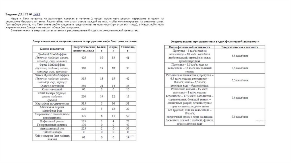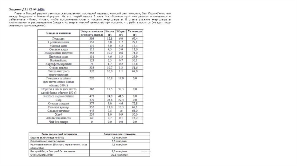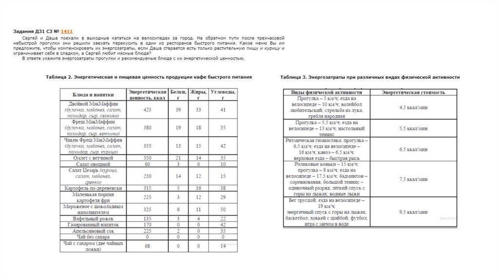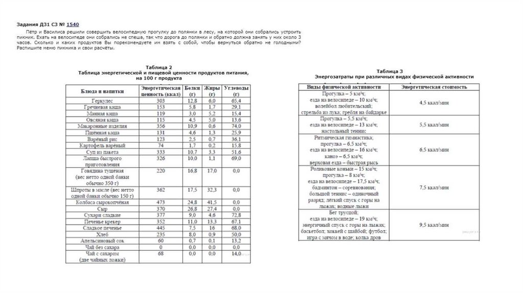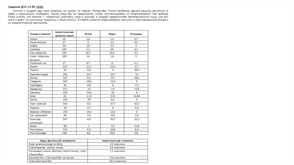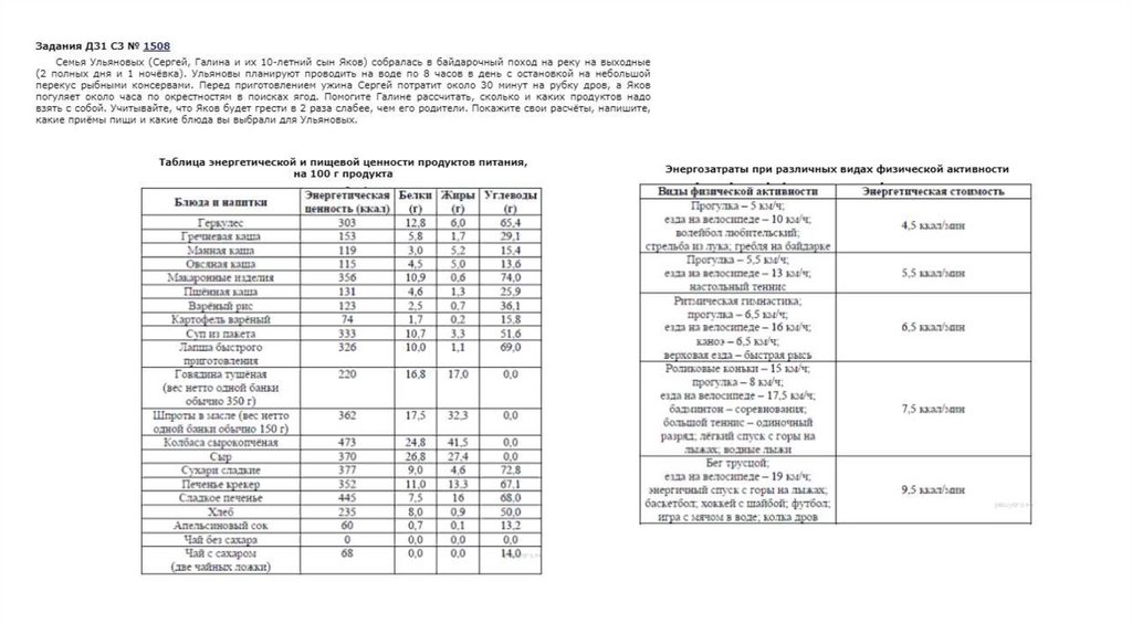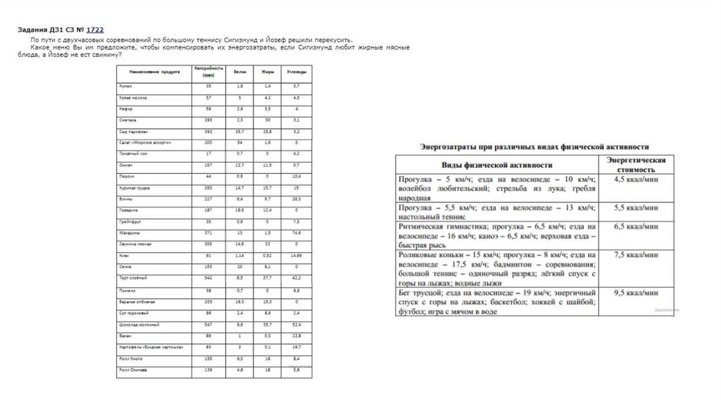 Пищевые рационы. Задачи