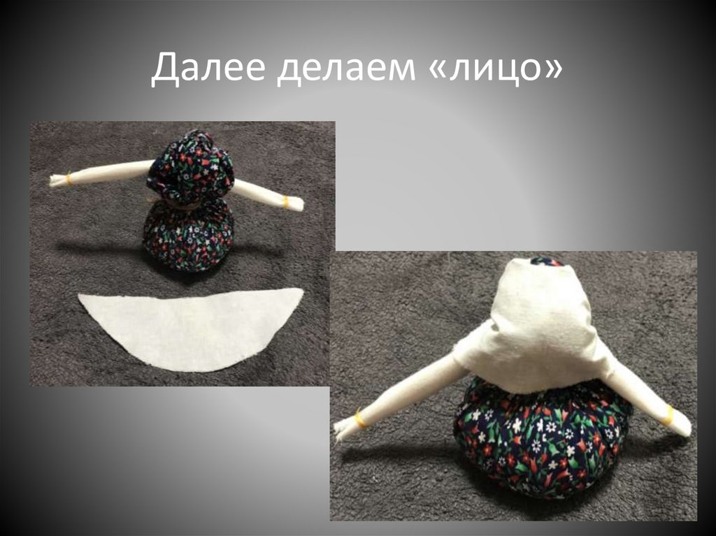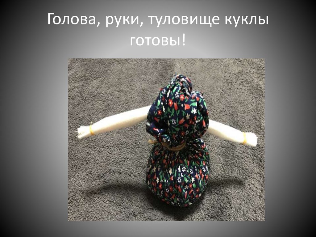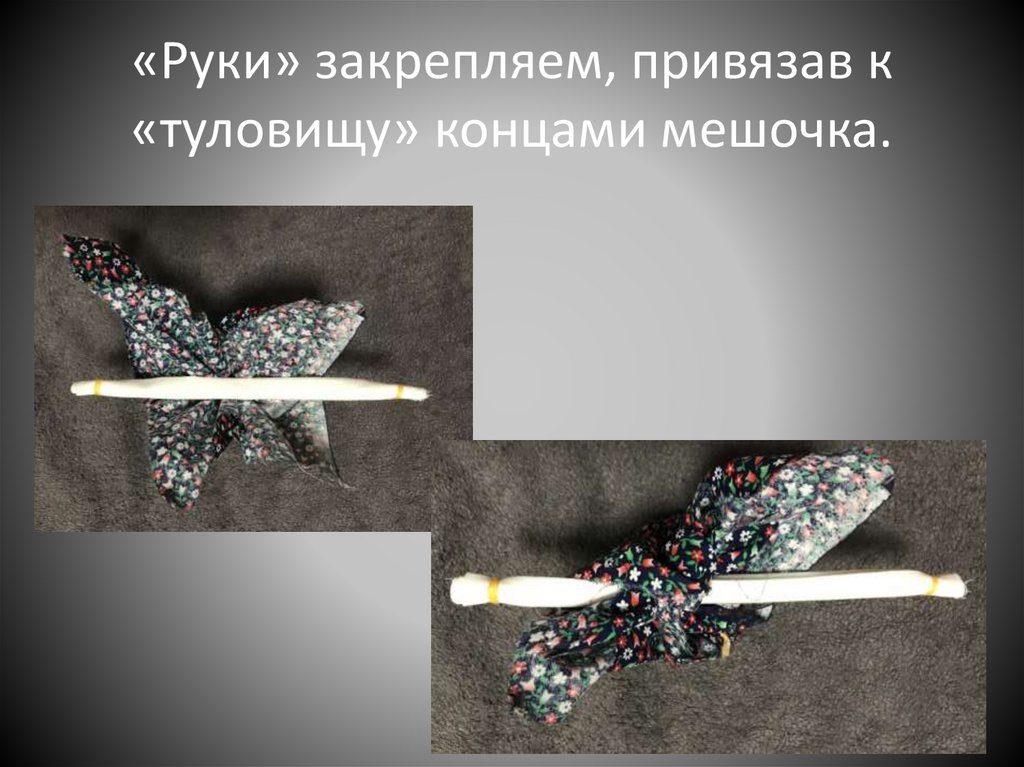 «Руки» закрепляем, привязав к«туловищу» концами мешочка.