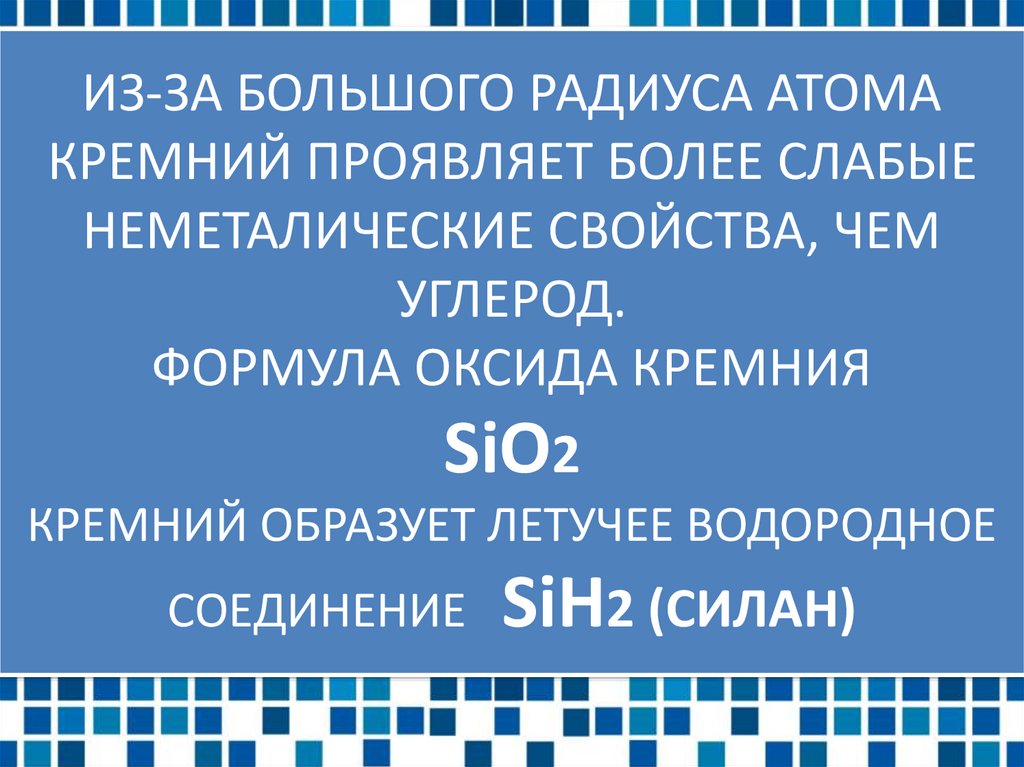 ИЗ-ЗА БОЛЬШОГО РАДИУСА АТОМАКРЕМНИЙ ПРОЯВЛЯЕТ БОЛЕЕ СЛАБЫЕ