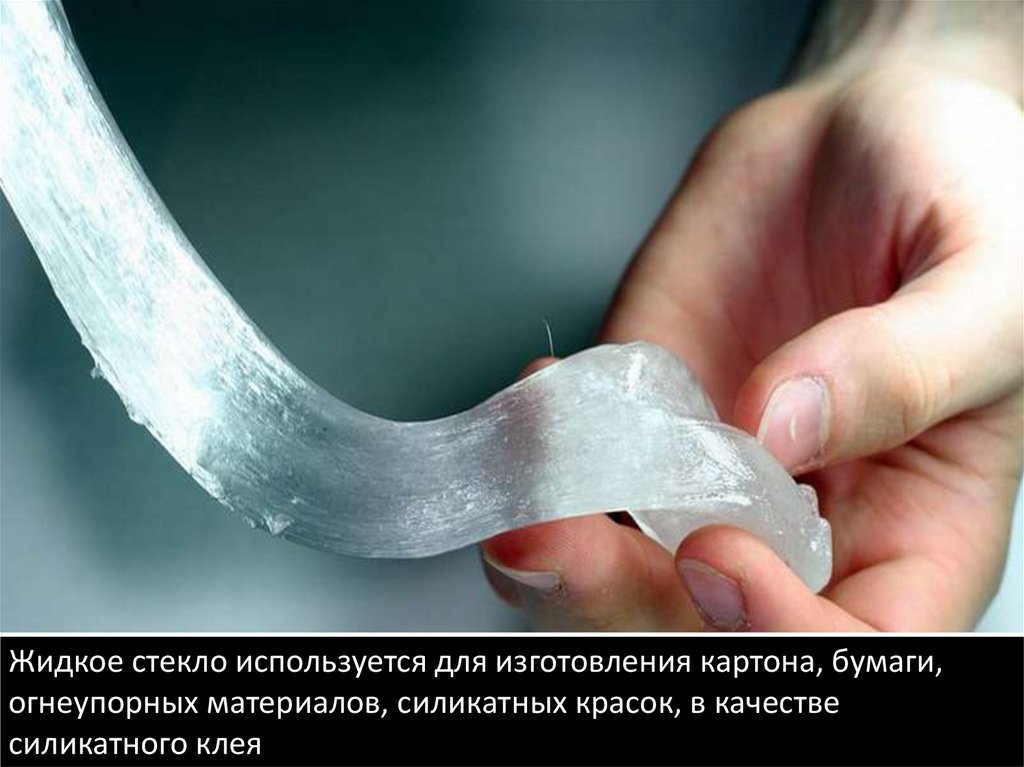 Жидкое стекло используется для изготовления картона, бумаги,огнеупорных материалов, силикатных красок, в качестве
