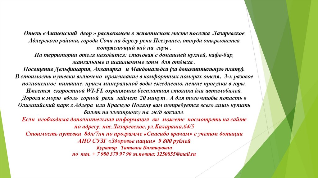 пос.ЛазаревскоеОтель «Амшенский двор» предназначен