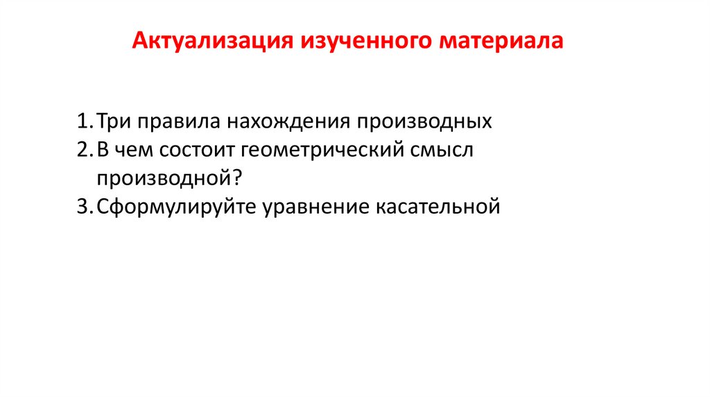 Актуализация изученного материала1.Три правила нахождения производных