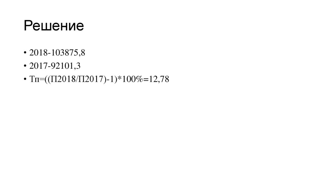 • Тп=((П2018/П2017)-1)*100%=12,78