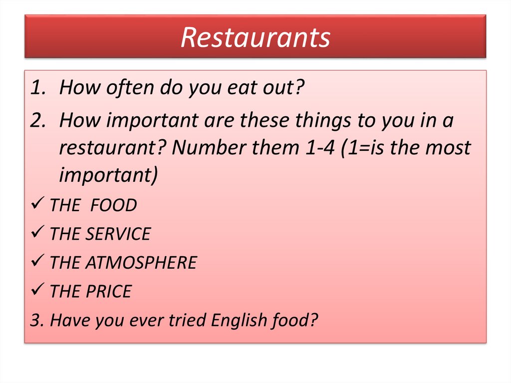 restaurant? Number them 1-4 (1=is the most