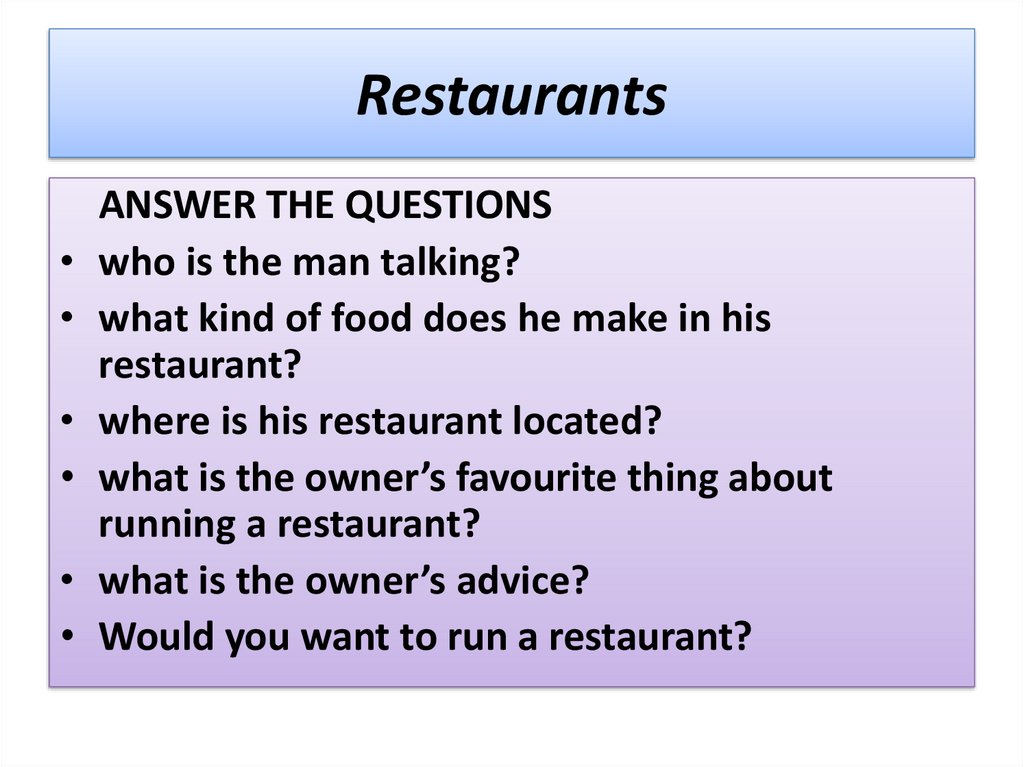 RestaurantsANSWER THE QUESTIONS