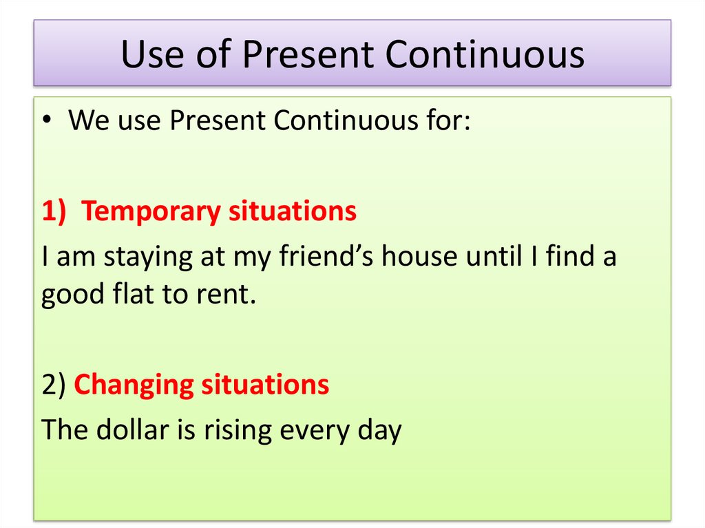 Use of Present Continuous• We use Present Continuous for: