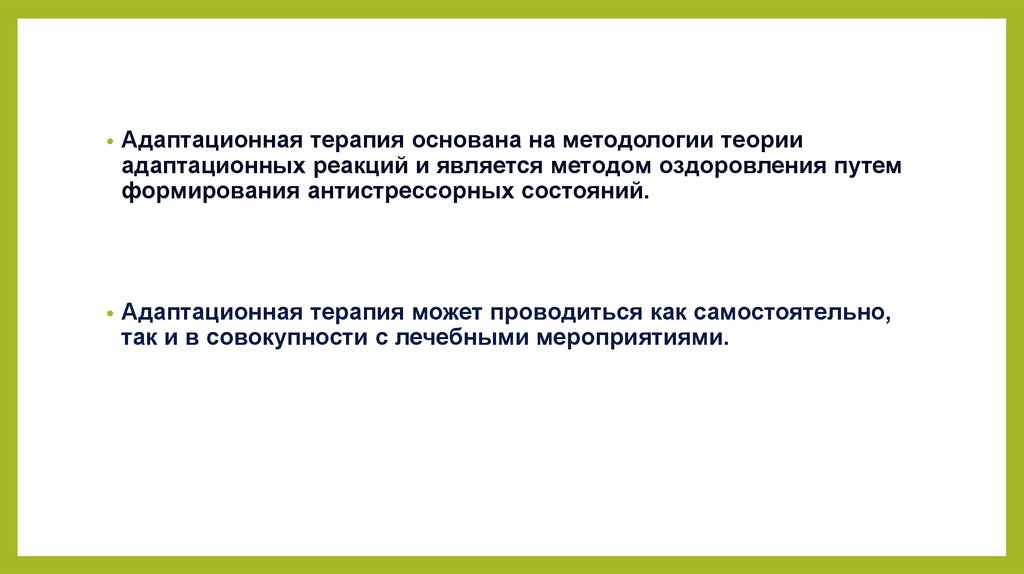 Адаптационная терапия основана на методологии теории