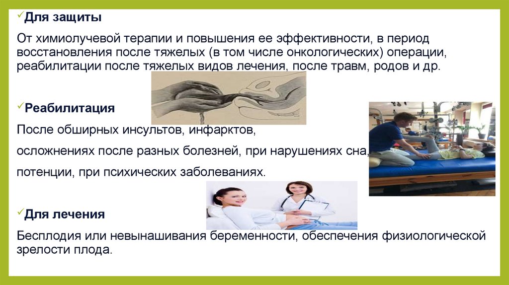 реабилитации после тяжелых видов лечения, после травм, родов и др.