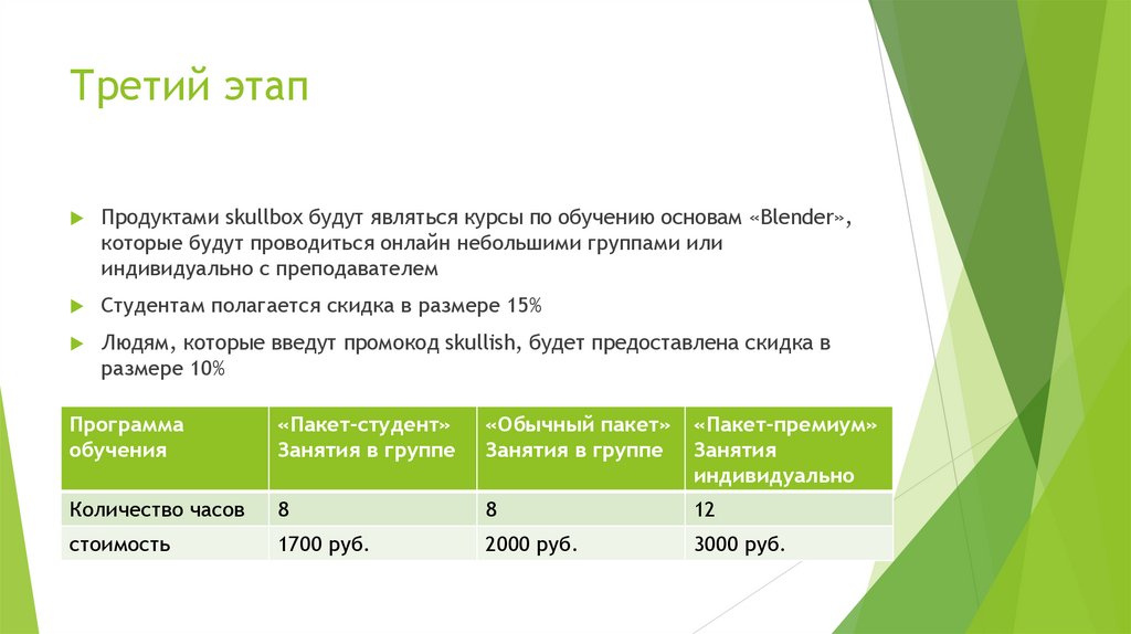 Третий этапПродуктами skullbox будут являться курсы по обучению основам «Blender»,