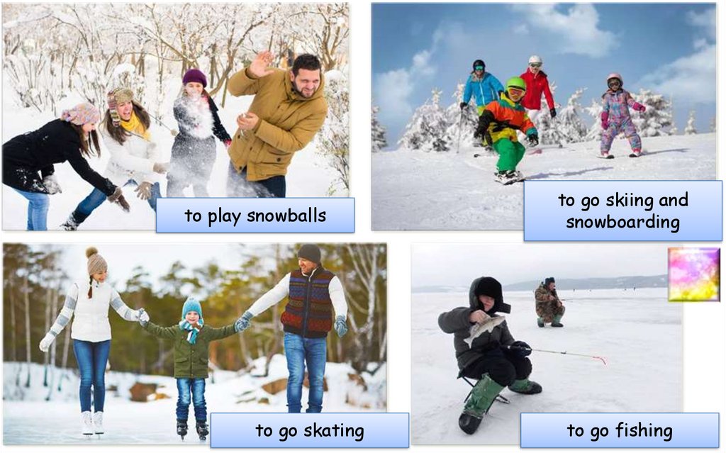 to play snowballsto go skating