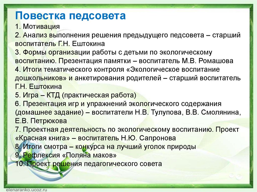 Повестка педсовета1. Мотивация