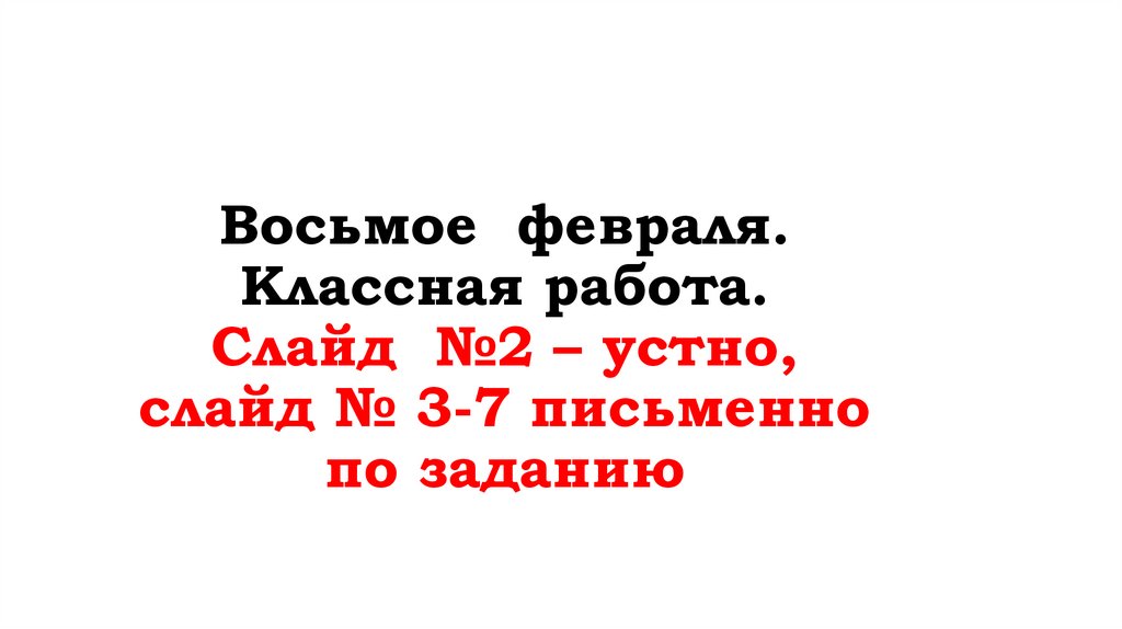 Восьмое февраля.Классная работа.