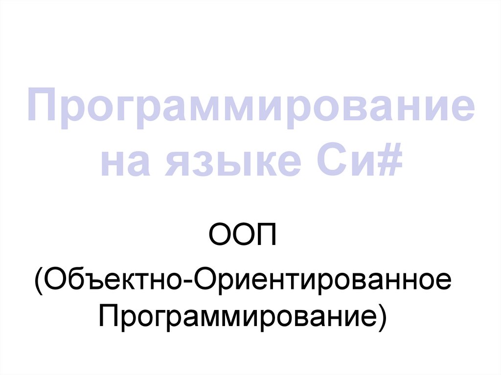 Программирование на языке Си#. ООП (Объектно-Ориентированное Программирование)