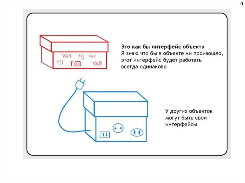 Абстракция — у объекта есть «интерфейс»: у объекта есть