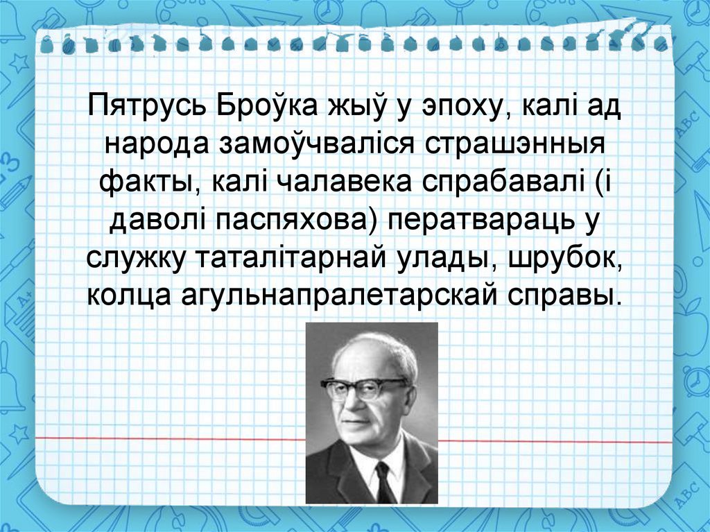 Пятрусь Броўка жыў у эпоху, калі аднарода замоўчваліся страшэнныя